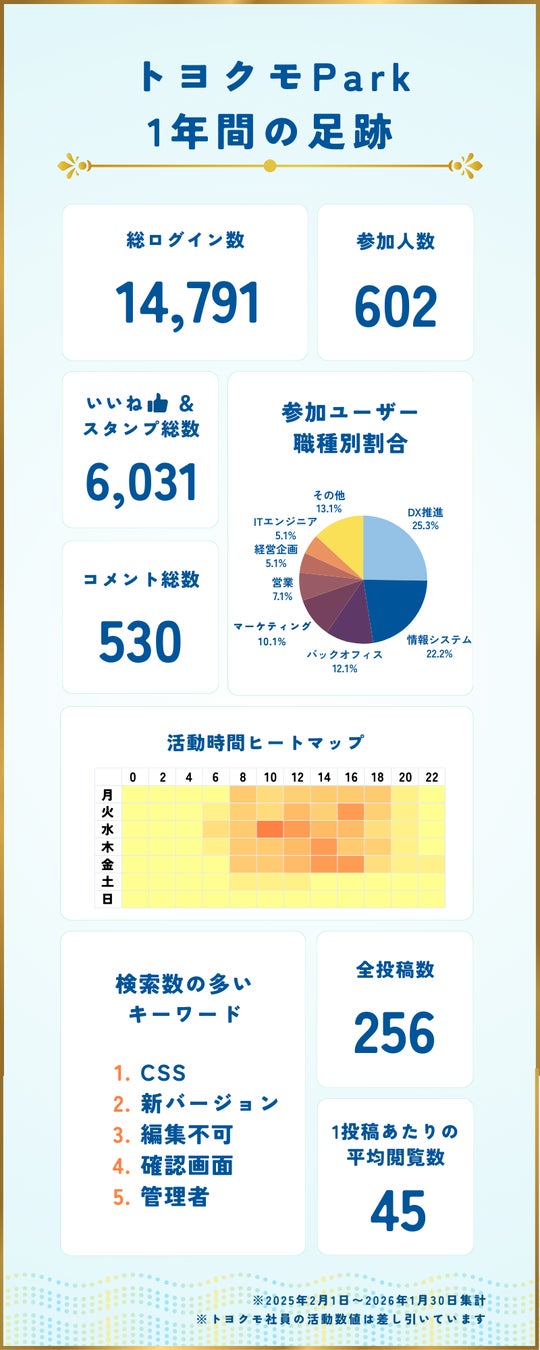 開設から1年で、トヨクモParkは業種/部署を超えてトヨクモkintone連携サービス活用に関するナレッジが集まるコミュニティへと成長しています。