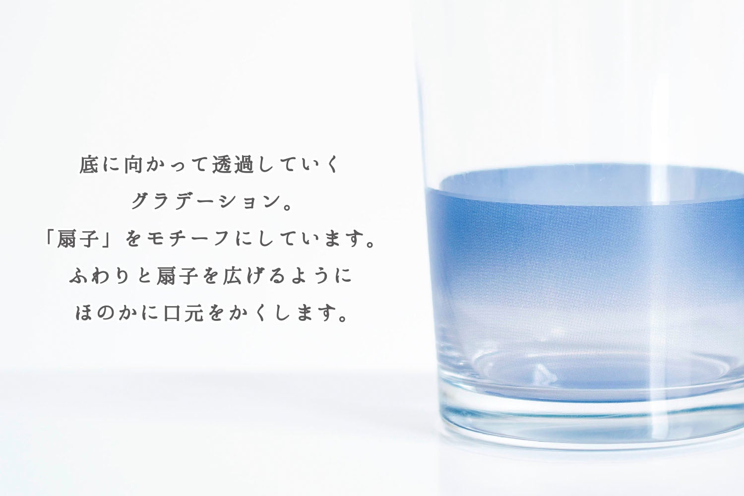 底から徐々に広がるグラデーションは扇子をモチーフとし、そっと隠します。