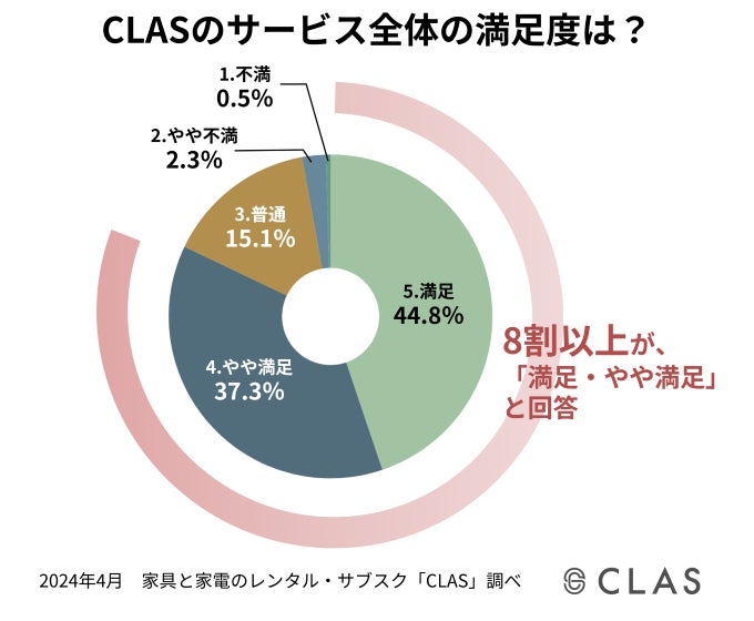 【設立6周年!】2年連続認知度No.1の家具と家電のレンタル・サブスク「CLAS」、お客さま満足度82%と高評価!