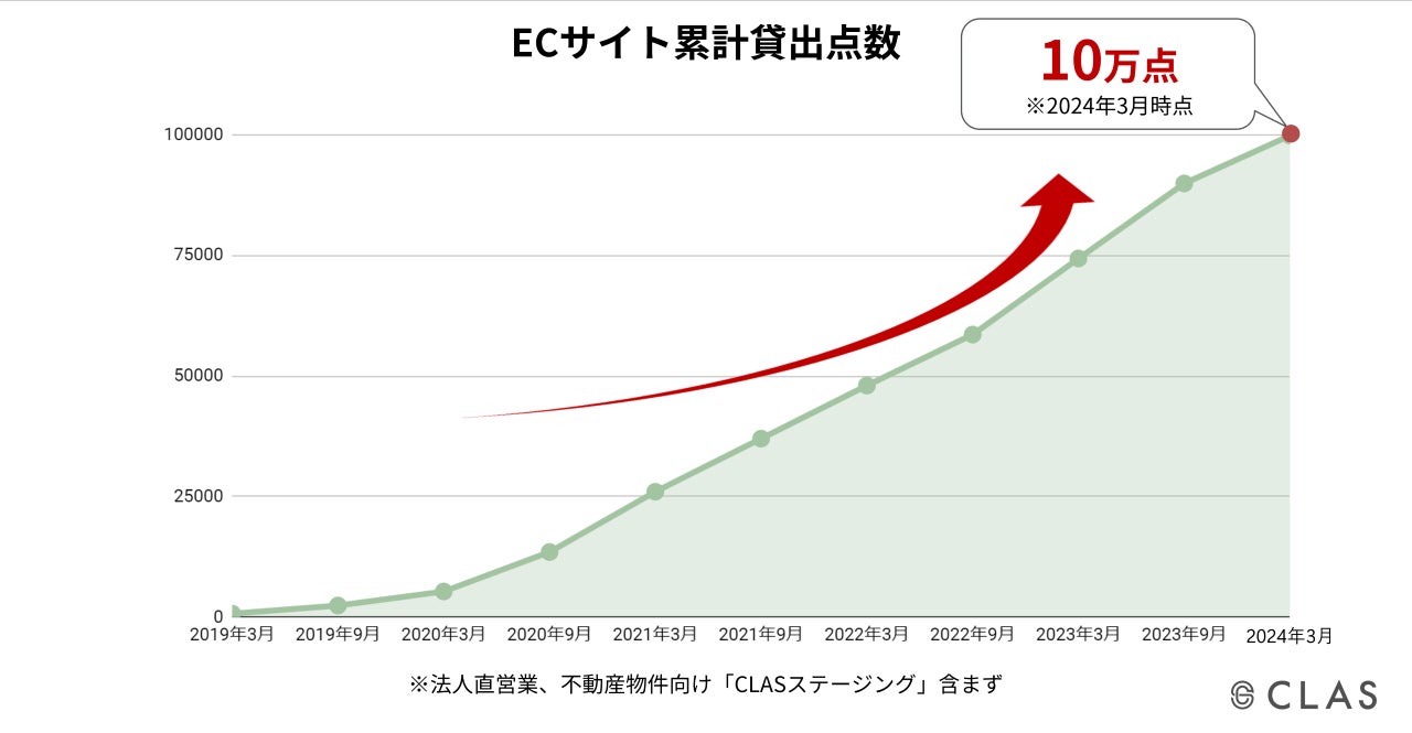 提供開始の2018年8月~2024年3月まで、ECサイト経由で累計10万点の家具や家電をレンタルいただきました。