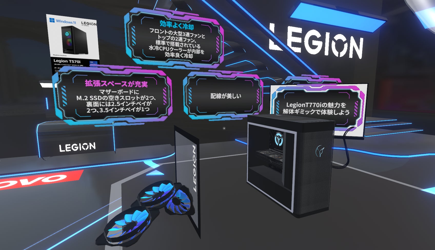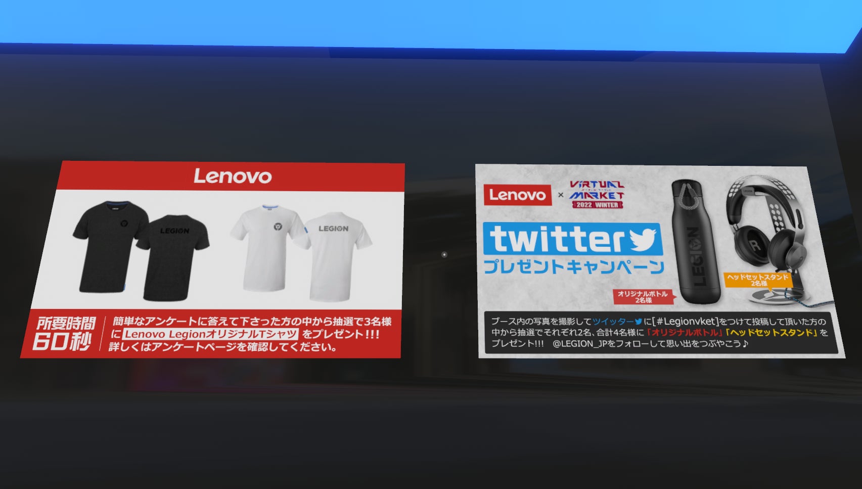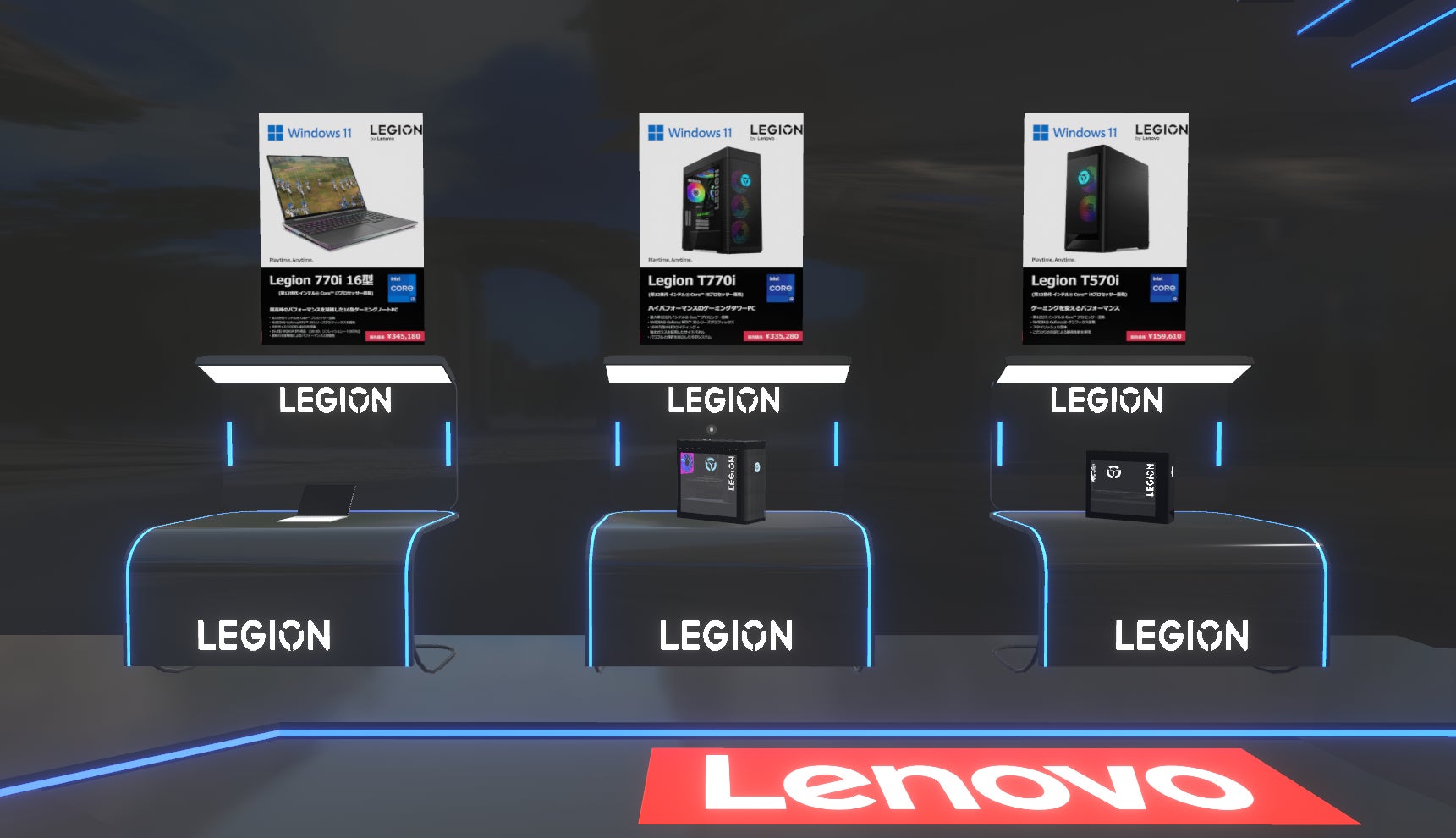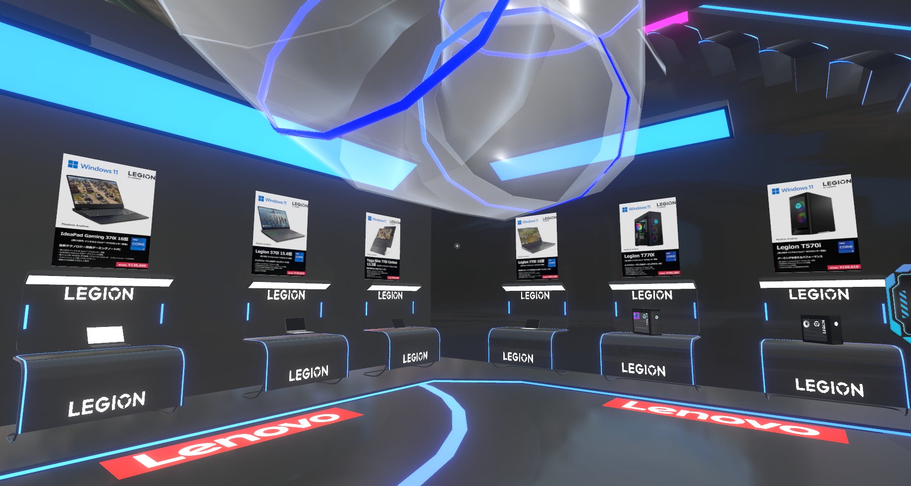 対象機種は、LegionT770i、Legion770i、Legion570i、LegionT570i、Yoga Slim 770i Carbon、IdeaPad Gaming 370iとなっており、バーチャルマーケット限定クーポンも発行されます。メタバース会場内のポスターにてご確認ください。