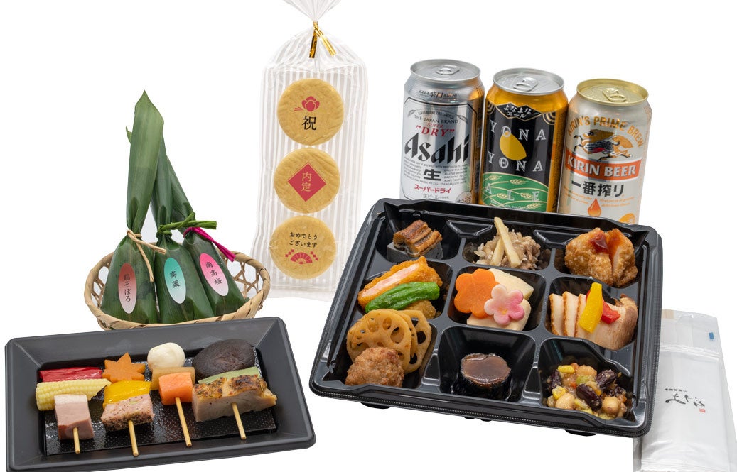 韓国定番料理を集めた9種アラカルトの他、食べ応えのあるサムゲタン風スープ、野菜たっぷりのナムルと牛焼肉のビビンバ、おつまみには韓国味付のりを用意しました。内定おめでとうメッセージ入りクッキーや選べるドリンク3本がセットになったここでしか食べられない特別プランです。