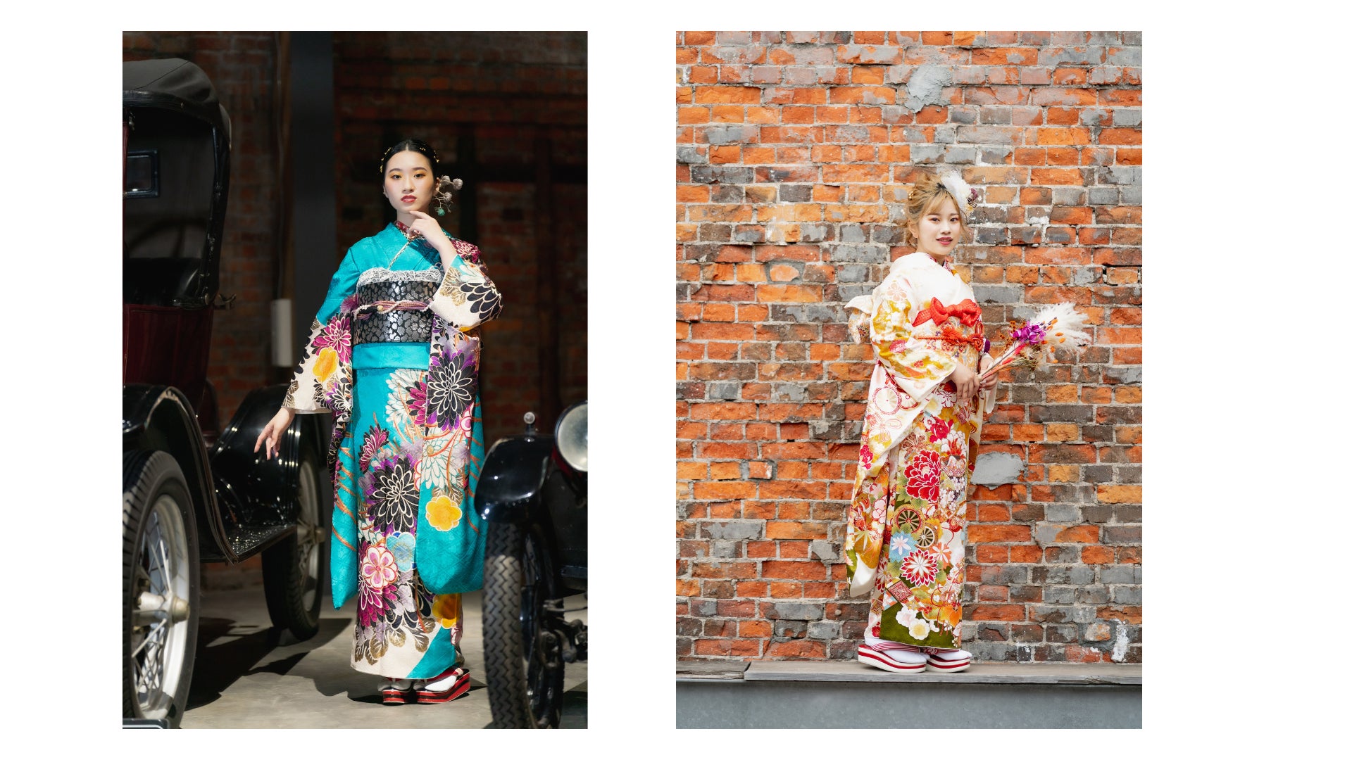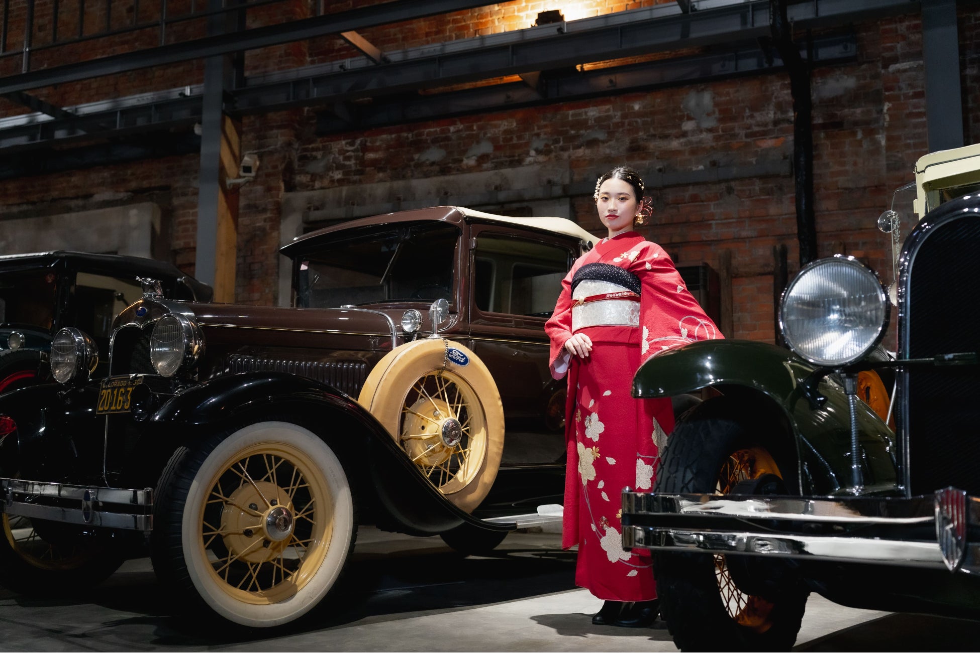 100年の歴史を誇る赤レンガ倉庫とクラシックカー、そして気品あふれる華やかな『TAKAMI BRIDAL』の振袖で、誰にも真似できない“とびっきりの”成人式の思い出を収められること間違いなし。ぜひこの機会に、特別な成人式でのお祝いにご利用下さい。
