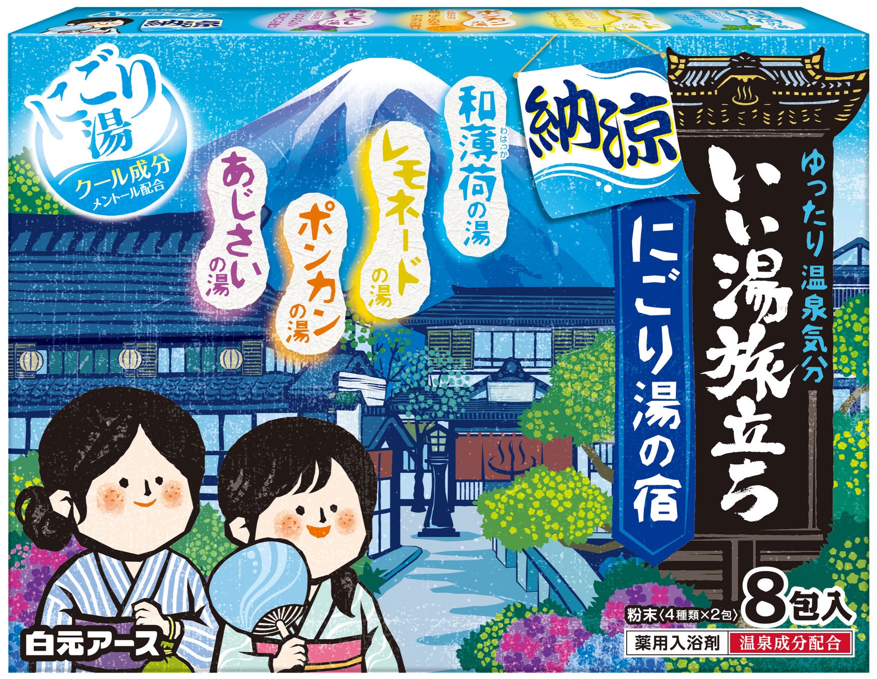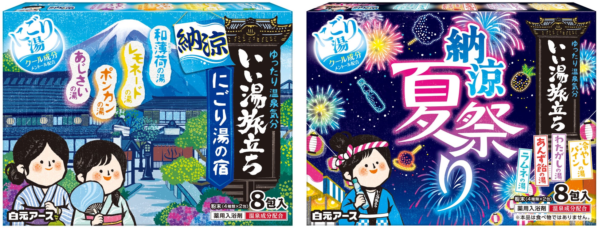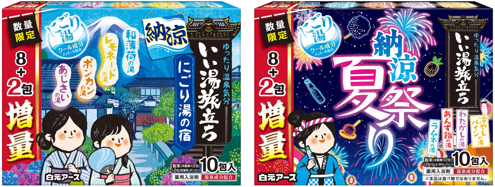 白元アース株式会社(本社:東京都足立区、社長:吉村一人)は、温泉成分配合の薬用入浴剤『いい湯旅立ち』から、粉末分包のクールタイプ『同 納涼にごり湯の宿』『同 納涼にごり湯 夏祭り』を3月3日より新発売いたします。