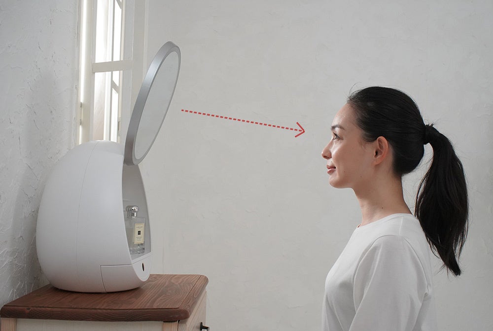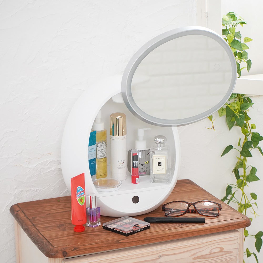 ミラーと収納を兼ね備えた、つるんとかわいいタマゴのボックス