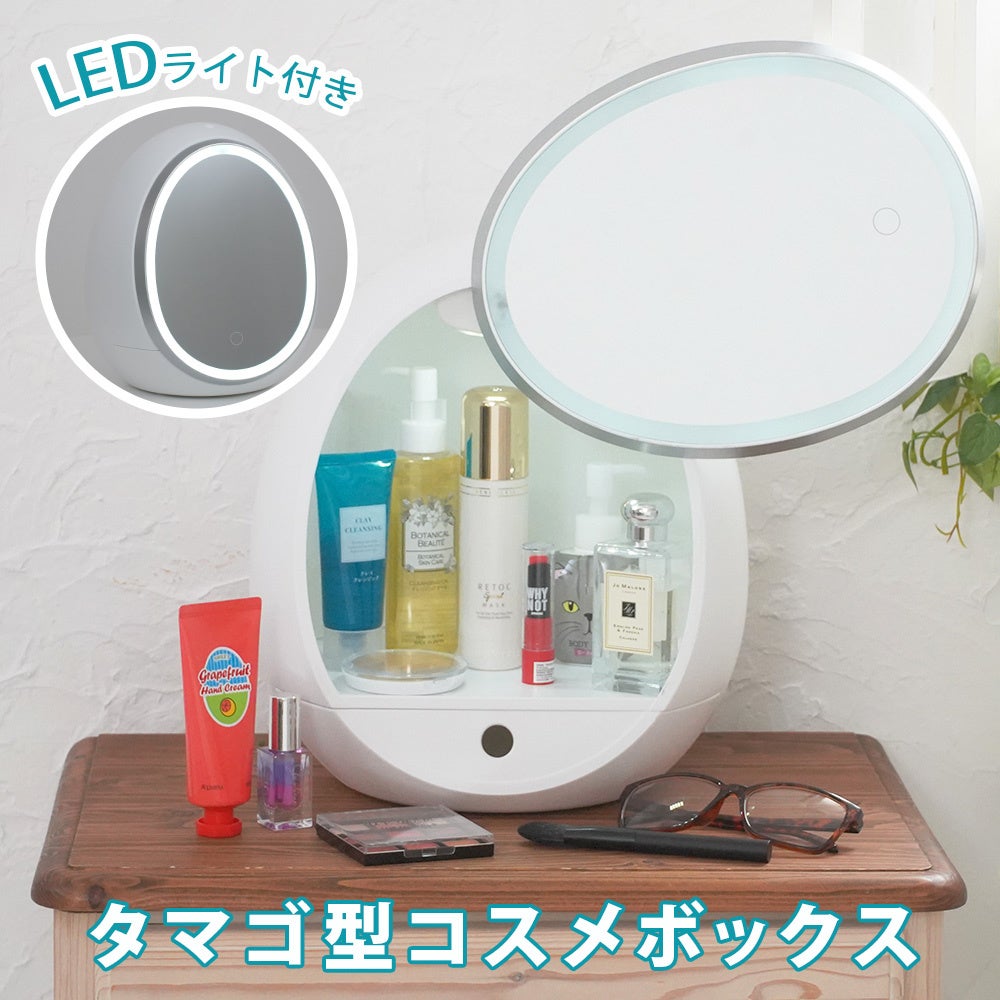 【オシャレさん必見】ライト付きミラーでキレイにメイクアップ!タマゴ型コスメボックスを販売