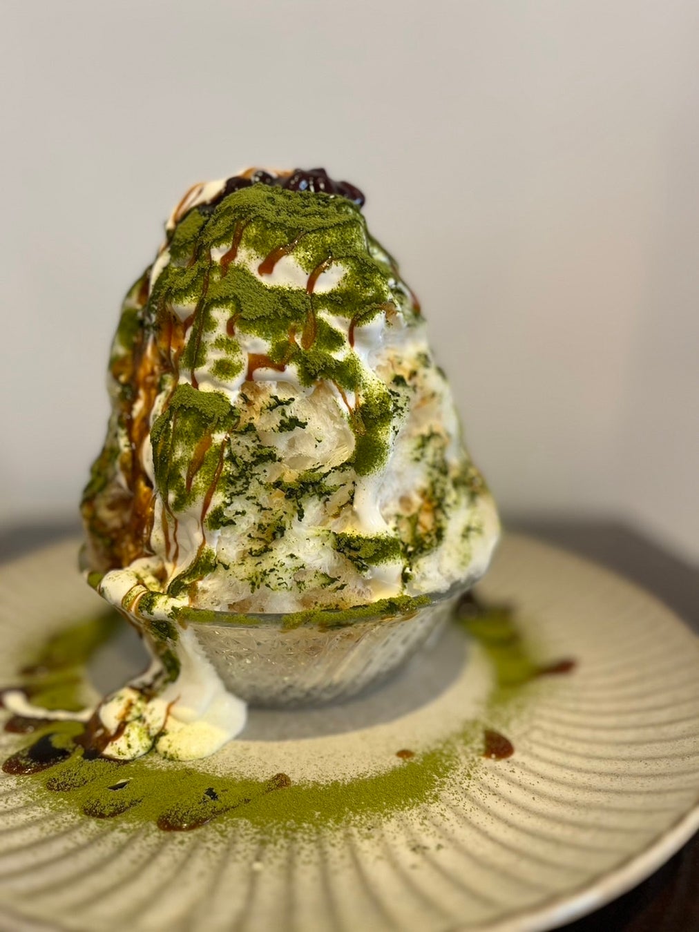 宇治抹茶パウダーとオリジナル黒糖シロップに加え氷の中にたっぷりとあずきとクリームを忍ばせたリッチな仕上がり。