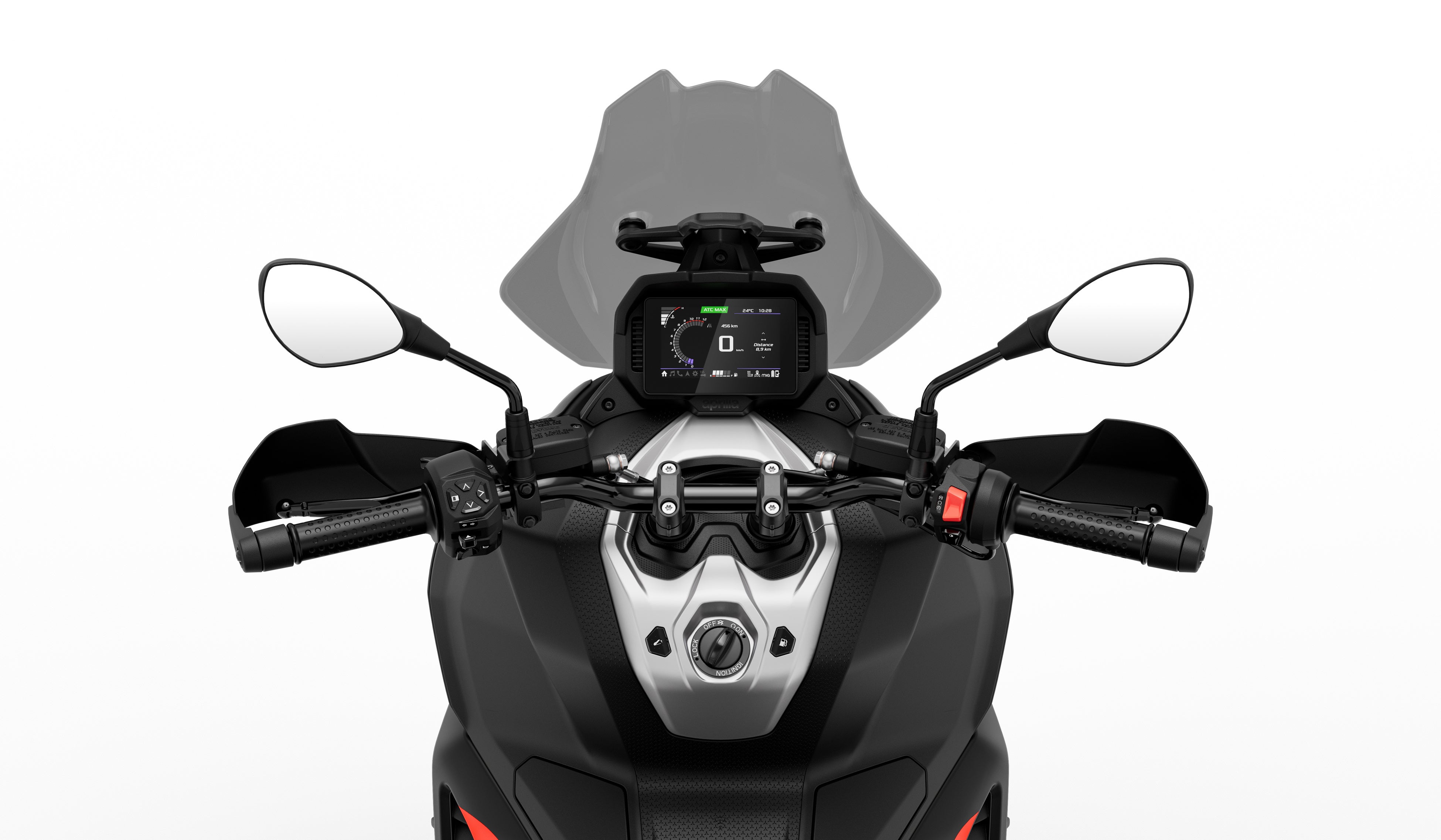 SR GT 400 – アプリリアのモーターサイクルの伝統を受け継ぎ、パワフルで先進テクノロジーを搭載した、アドベンチャーコンセプトのミドル GT スクーター。