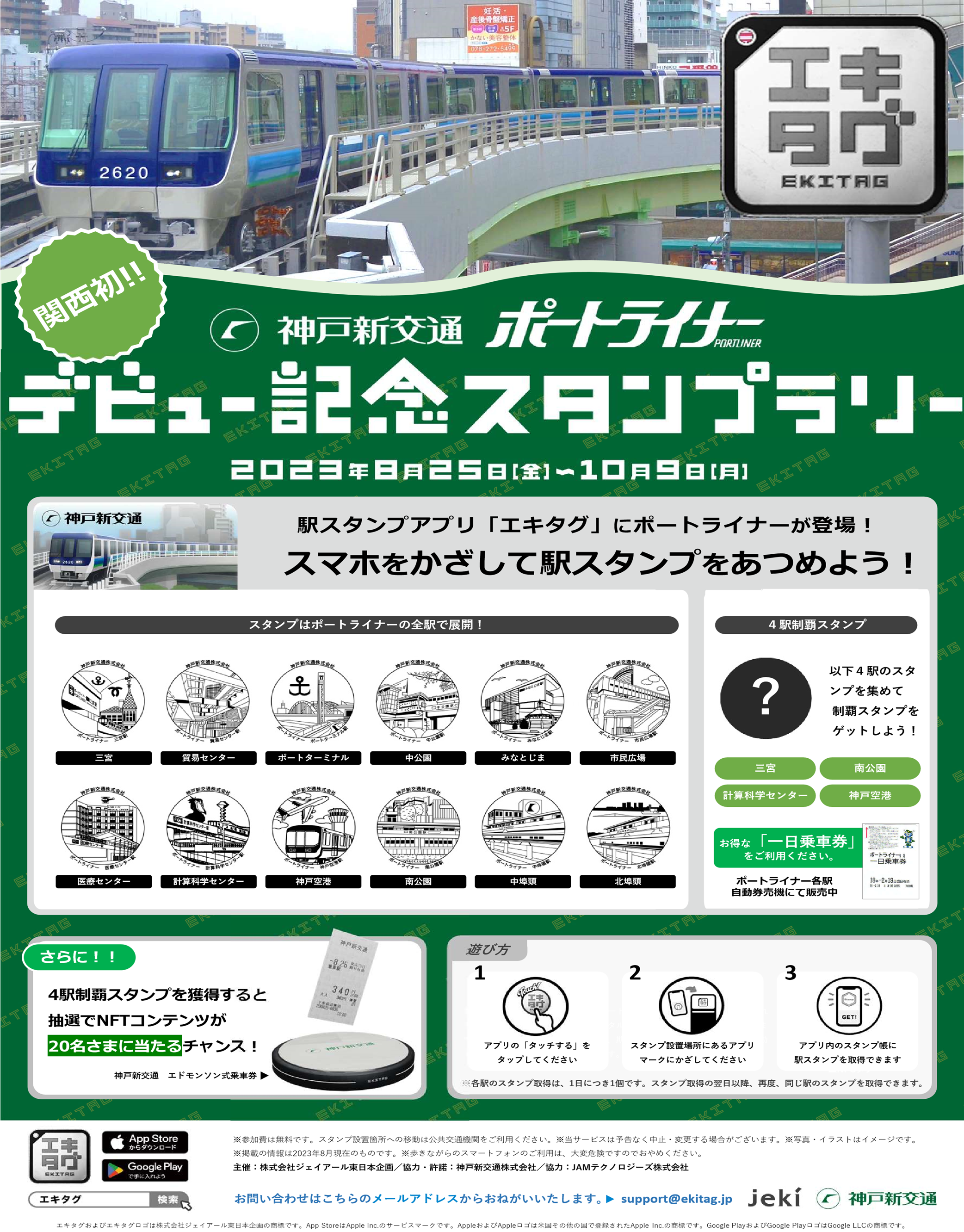 2023年8月25日より神戸新交通「ポートライナー」の全12駅にエキタグを展開します。