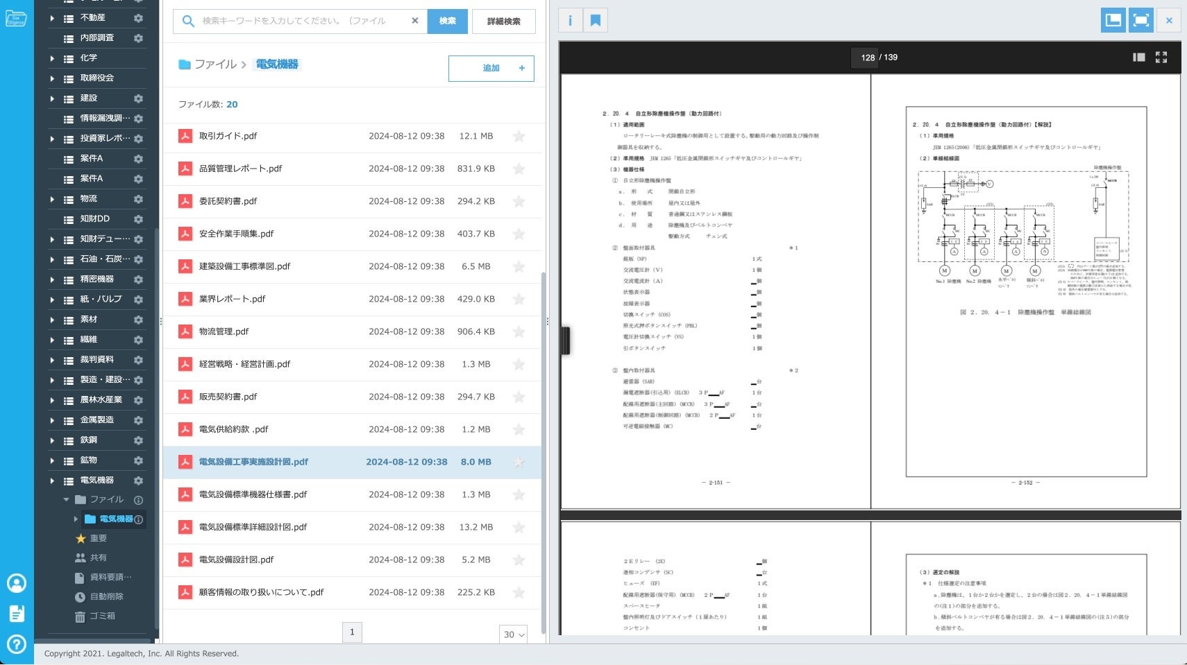 - 環境データ管理: 環境に関する規制データや証明書、コンプライアンス関連の文書を一元管理することで、「リーガルテックVDR電気機器」は企業が環境規制を遵守し、持続可能なビジネス運営を実現するためのサポートを提供します。