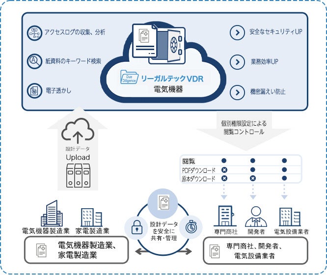 リーガルテックVDR(Virtual Data Room) 電気機器は、データの安全な管理と共有を支援するプラットフォームであり、日本の電気機器業界が直面する課題に対していくつかの方法で解決策を提供できます。