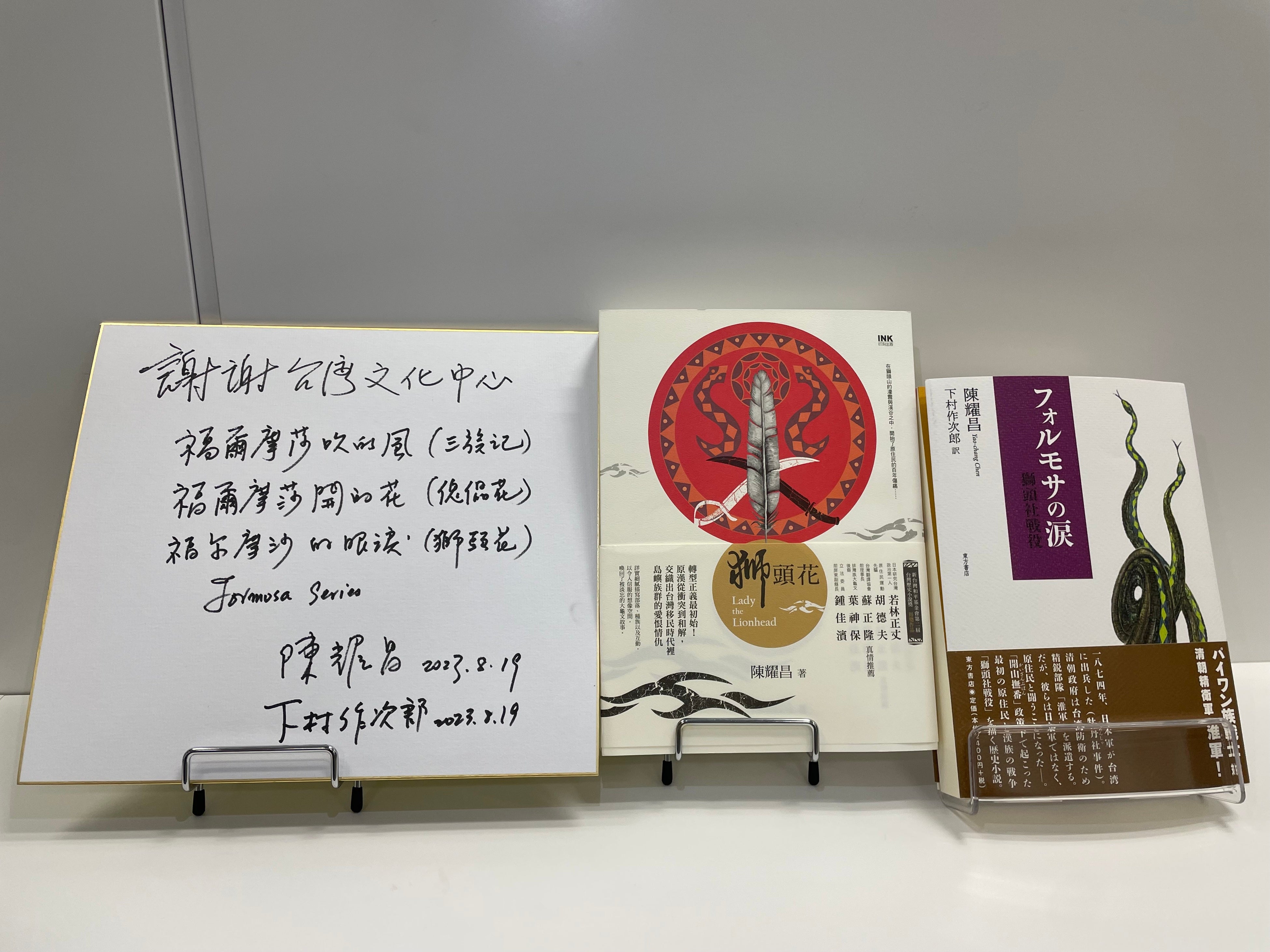 トークイベントでは、陳耀昌先生による歴史小説を書き始めるきっかけ、執筆にあたり、現地調査した歴史や人物にまつわる出来事などを語りました。訳者の下村作次郎先生は邦訳本の表紙のデザインを紹介し、小説の時代背景を詳しく解説してくれました。貴重なお話の数々を聞くことができ、ファンと共に楽しい時間を過ごしました。