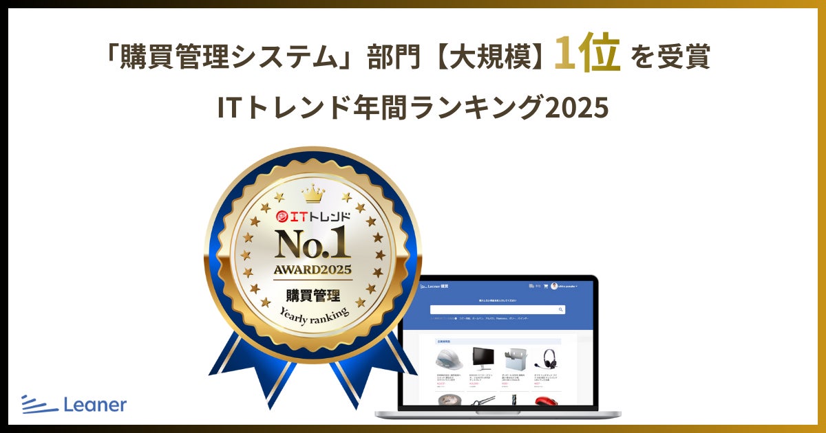 株式会社Leaner Technologies(本社:東京都品川区、代表取締役CEO:大平 裕介、以下「リーナー」)は、株式会社Innovation&Co.(本社:東京都渋谷区、代表取締役社長:幸 哲史)が運営するIT製品の比較サイト「ITトレンド」が発表した「ITトレンド年間ランキング2025」「購買管理システム・大規模」部門において、「リーナー購買」が1位を受賞いたしました。