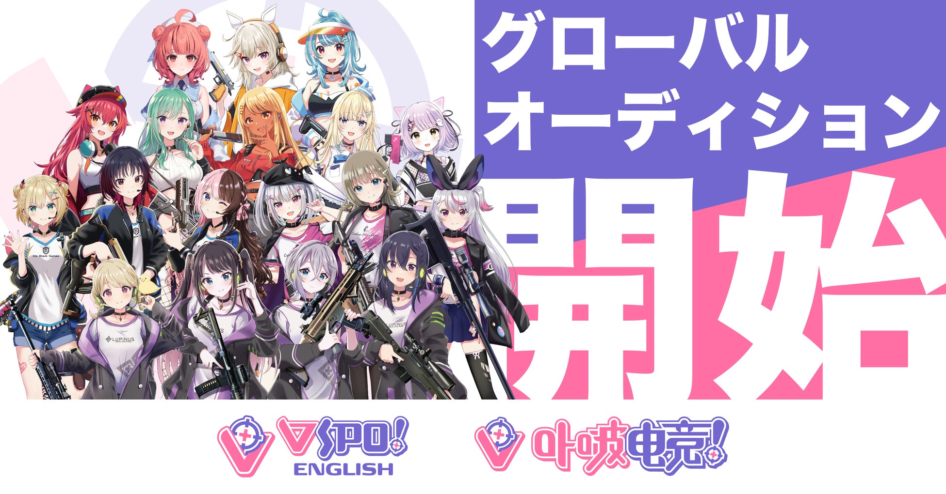国内外で若年層を中心に高い人気を誇る次世代 Virtual esports プロジェクト「ぶいすぽっ!」が、英語圏(英語話者)と中華圏(中国語話者)それぞれに向けて「VSPO! EN」および「卟啵电竞project(VSPO! CN)」のオーディションを本日8月12日(土)16:00[米国太平洋標準時8月12日(土)AM0:00]より開始いたします。