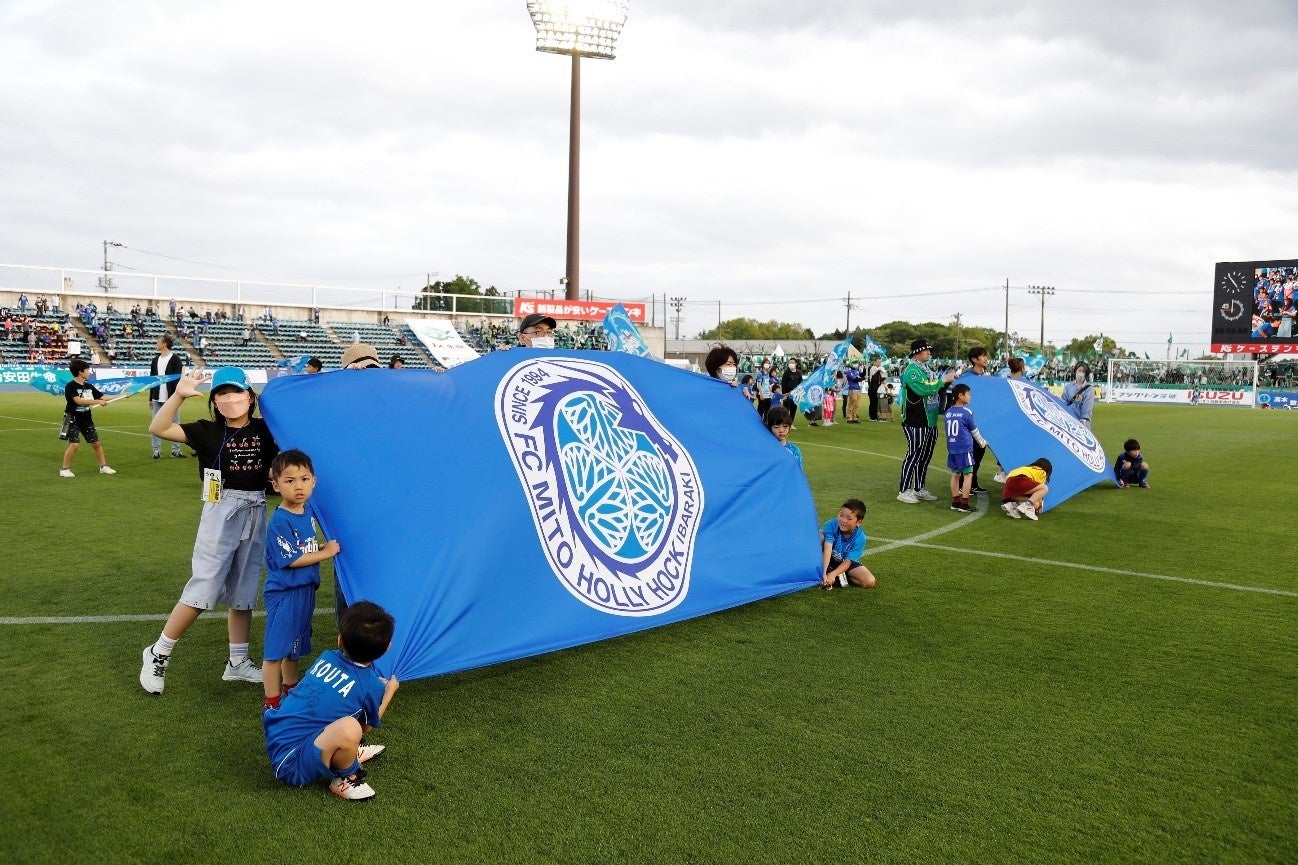 当日の選手入場時に水戸ホーリーホックのエンブレムフラッグを持って登場するフラッグベアラーをクリーニング専科で募集いたします。