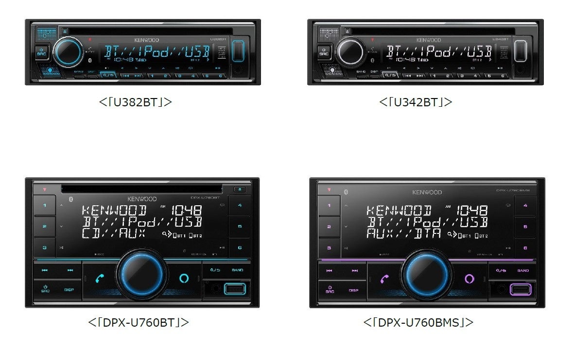 株式会社JVCケンウッドは、ケンウッドブランドより、カーオーディオの2022年新ラインアップとして、「Amazon Alexa」の搭載により「アレクサ」と話しかけるだけで起動し、音声操作に対応するCD/USB/iPod/Bluetooth®1DINレシーバー「U382BT」「U342BT」と、CD/USB/iPod/Bluetooth®2DINレシーバー「DPX-U760BT」、およびデータによる楽曲再生に特化したメカレスモデルのUSB/iPod/Bluetooth®2DINレシーバー「DPX-U760BMS」の計4モデルを6月上旬より順次発売します。