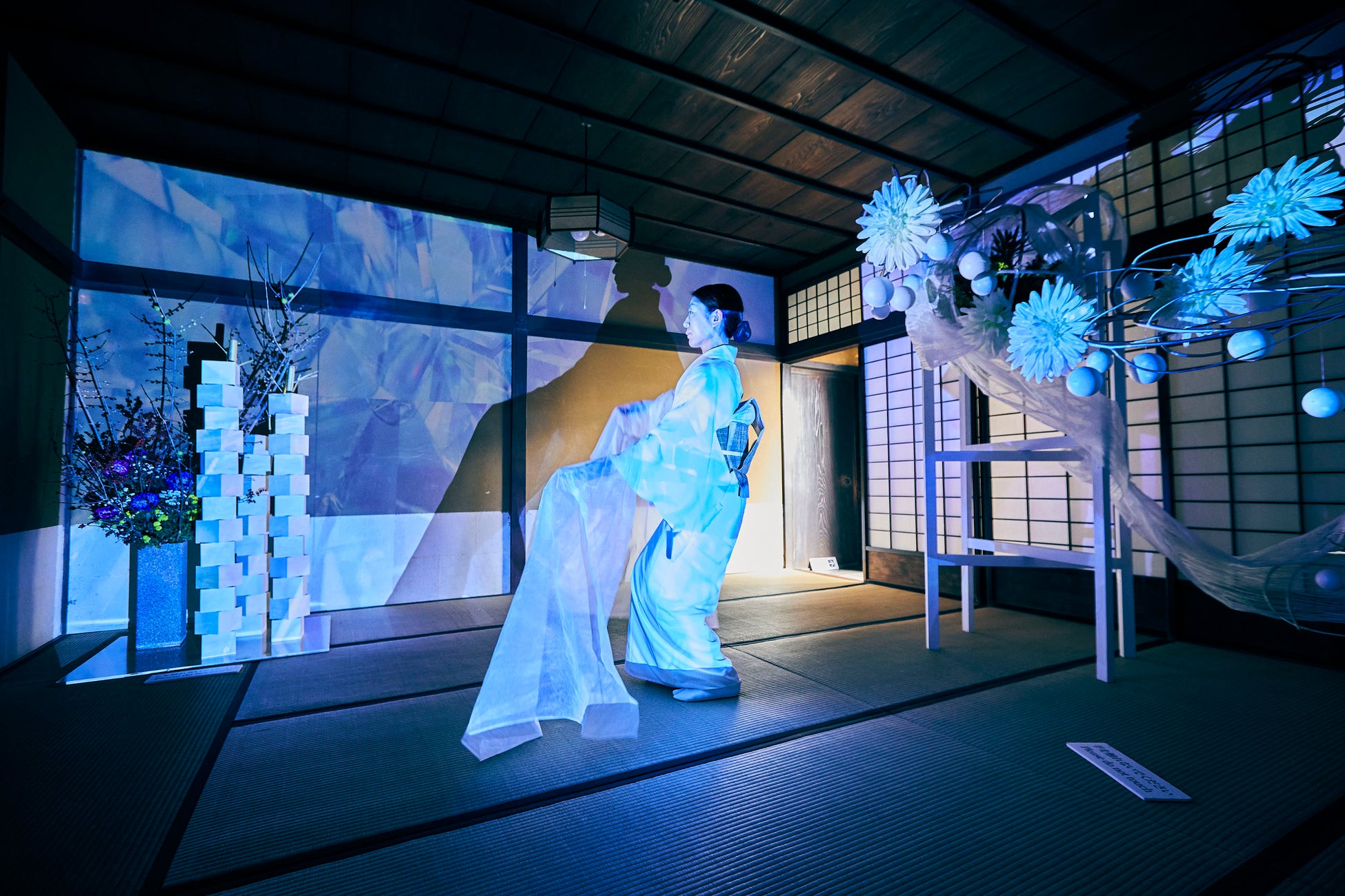 四間道の町並みのシンボル・伊藤家住宅を特別に公開し、華道や書道、舞妓・芸妓文化など日本の伝統的な文化芸術とプロジェクションマッピング・デジタルアートとのコラボレーションによる展覧会。