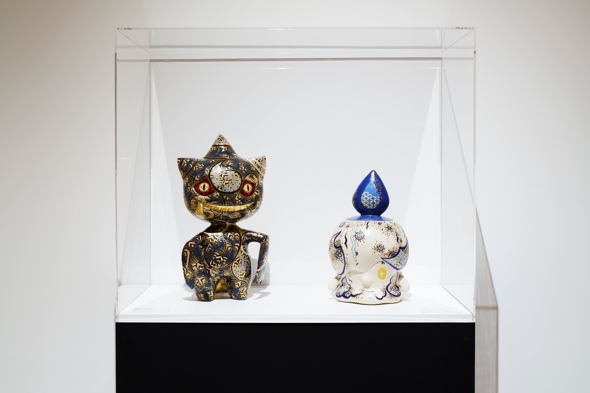 また、3 名の作家が手掛けたそれぞれの新作が、東京会場で初めて公開されました。新作の4 作品は、《サンダース》などを制作した吉田泰一郎による全長約2mにも及ぶ大迫力の《ミュウツー》と《羊歯唐草文シェイミ》を制作した植葉香澄による美しい文様を纏った《蔦唐草文ジュペッタ》を含む新作に加え、桑田卓郎による時代のアイコンであるピカチュウをモチーフにしたカップとボウルは今回倍増され、新たにタイル576枚を加えたスケールの大きい作品として生まれ変わりました。東京会場での展示作品はこれらの新作4作品を含め約80 点になります。