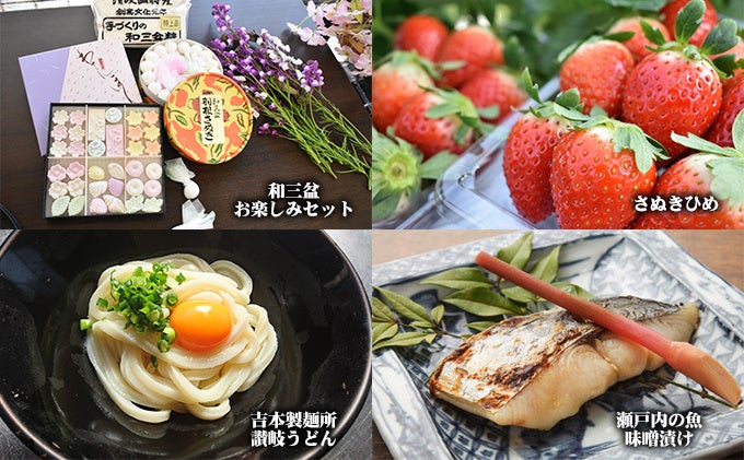 ※東かがわ市【満喫】定期便以外にも12事業者12品の「東かがわ市【お楽しみ】定期便」 10万円や6事業者6品の「東かがわ市【幸せの甘い】定期便」5万円も同時に寄附を募っています。