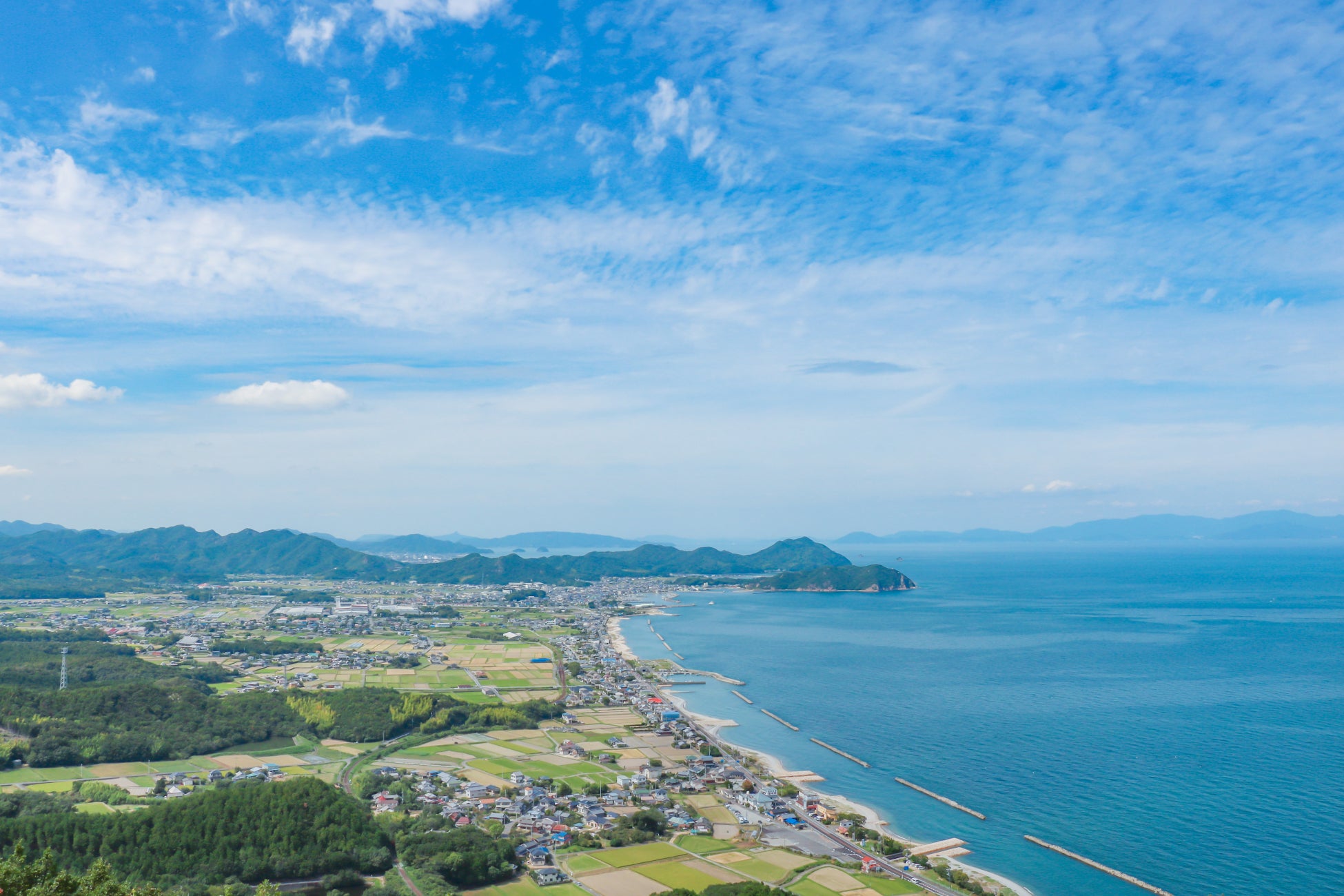 北は瀬戸内海東部の播磨灘に臨み、西はさぬき市と接しています。南と東は阿讃山脈を境に徳島県と接する自然環境に恵まれた地域です。瀬戸内海に面して平野部が開け、市街地と田園地域を形成しています。比較的晴天の日が多く、降水量が少ない瀬戸内海特有の温暖で穏やかな気候が特徴です。