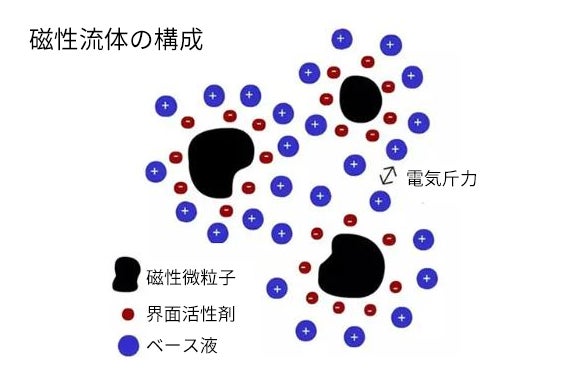 磁性流体が機能材料として応用されたのは1960年代にNASAで宇宙機器、宇宙服の回転部分の機密保持を目的としたものが最初といわれています。現在では、半導体の製造装置に使用する真空シールにも使用されており、密閉された真空空間での精密な成膜加工において欠かせない材料となっています。