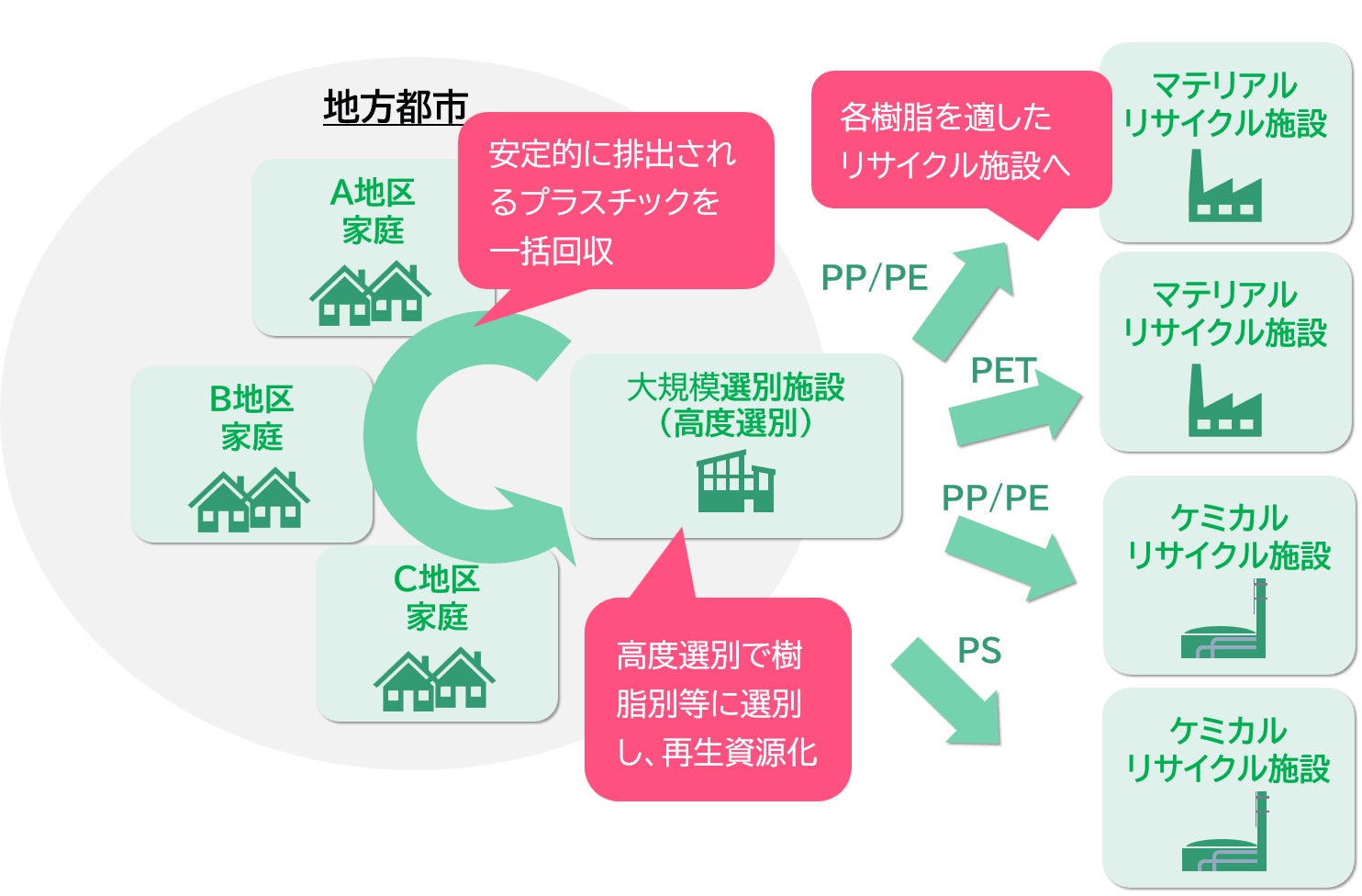 ― 家庭排出の廃プラスチックを集約し、大規模選別施設での高度選別を実施