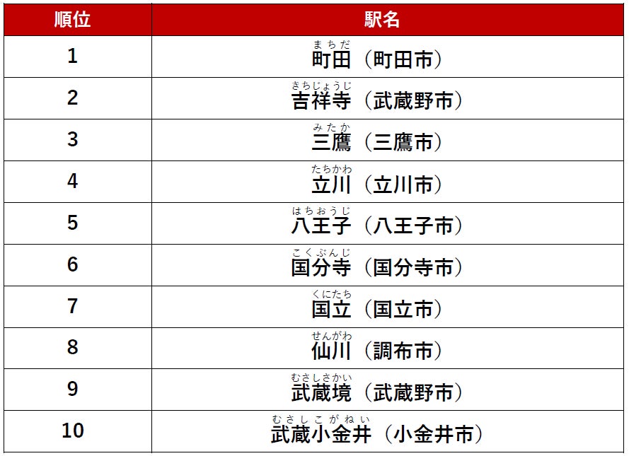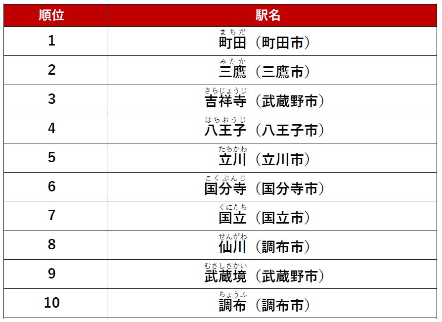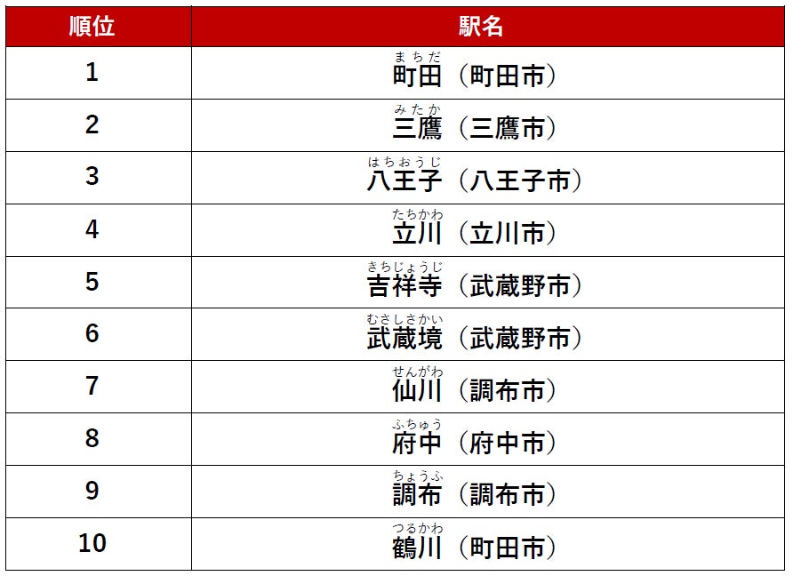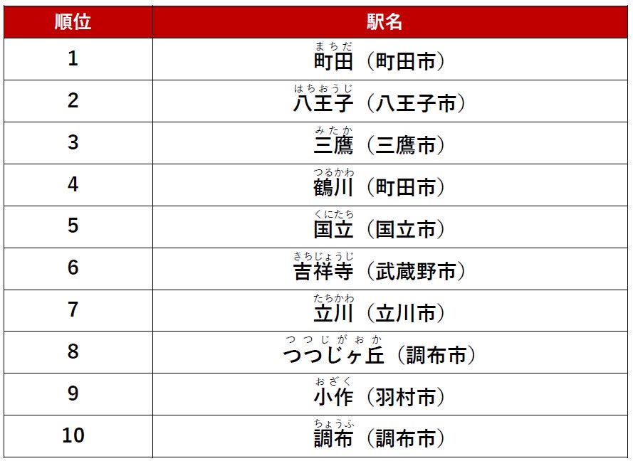 不動産情報サービスのアットホーム株式会社(本社:東京都大田区 代表取締役社長:鶴森 康史 以下、アットホーム)は、「不動産情報サイト アットホーム」で賃貸居住用物件において、PV数が多い人気の駅をまとめた「アットホーム人気の駅ランキング 東京都下編」を発表します。