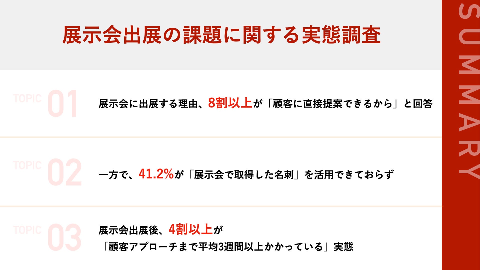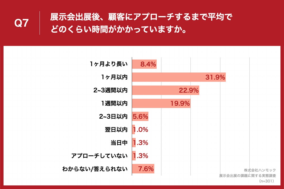 - 展示会出展後、4割以上が「顧客アプローチまで平均で3週間以上かかっている」実態