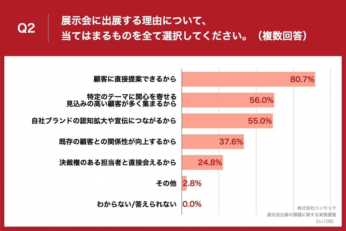 - 展示会に出展する理由、8割以上が「顧客に直接提案できるから」と回答