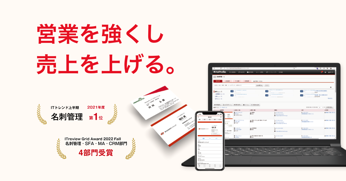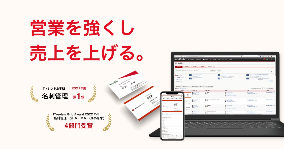 ホットプロファイルは、営業を強くし売上をアップするための、名刺管理・営業支援ツールです。