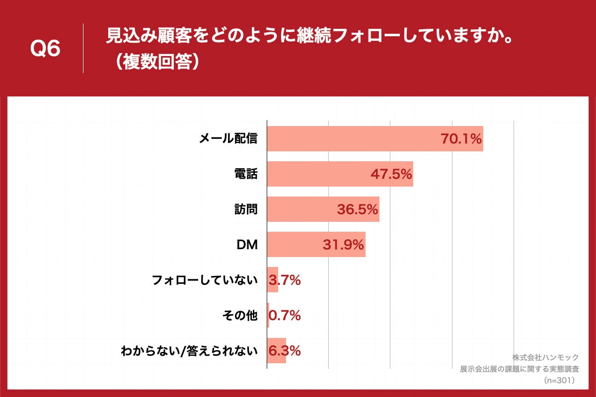 - 見込み顧客へは、70.1%が「メール配信」で継続フォローを実施