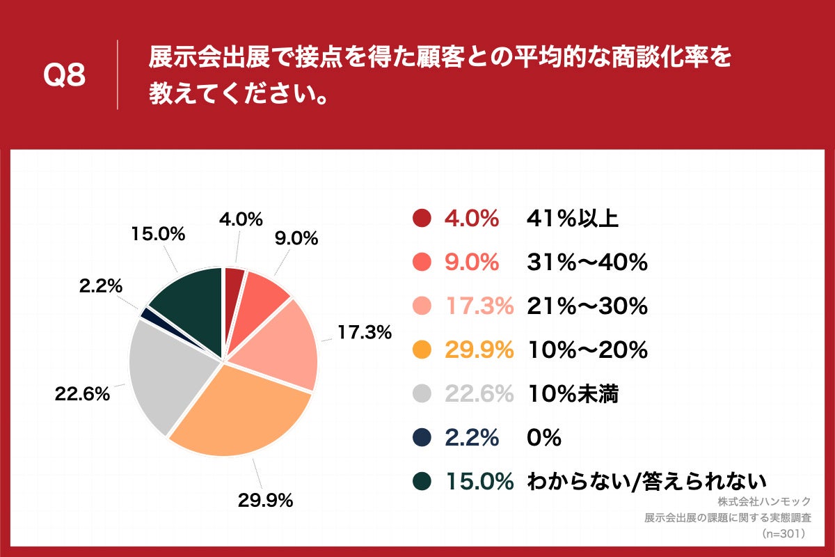 - 出展で接点を得た顧客との商談化率、半数以上が「20%以下」と回答