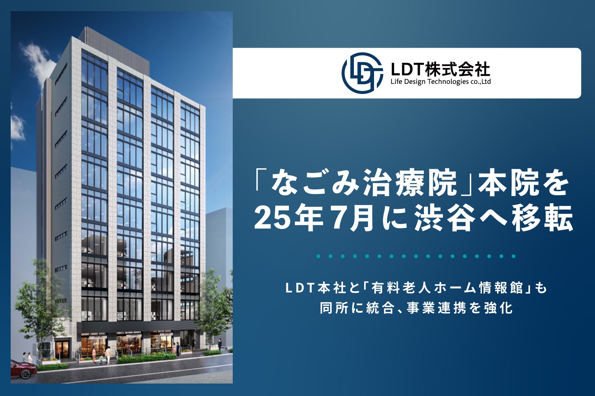 LDT株式会社は、港区の現本社ならびに新宿区西新宿の新宿オフィスを、2025年7月1日付で渋谷区渋谷2丁目3-5 COERU渋谷二丁目 3階へ移転します。グループの企画・管理機能と人材サービス部門を「なごみ治療院」「有料老人ホーム情報館」と同一拠点に集約することで、情報共有を迅速化しシナジー創出を図ります。