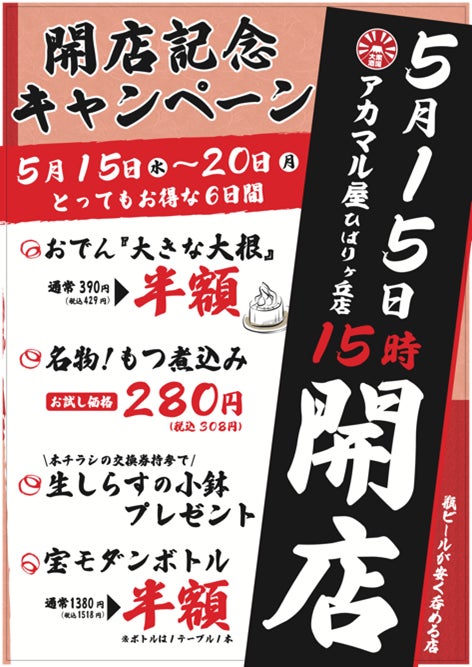 「アカマル屋 ひばりヶ丘店」開店記念キャンペーンを5⽉20⽇(⽉)まで実施中︕