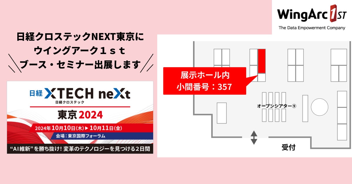 ウイングアーク1st株式会社は、10月10日(木)、11日(金) に開催される「日経クロステックNEXT 東京 2024」 に出展いたします。 ウイングアーク1stブースでは、散在するデータの集約・活用や帳票電子化でDX推進を支援するソリューションをご紹介します。