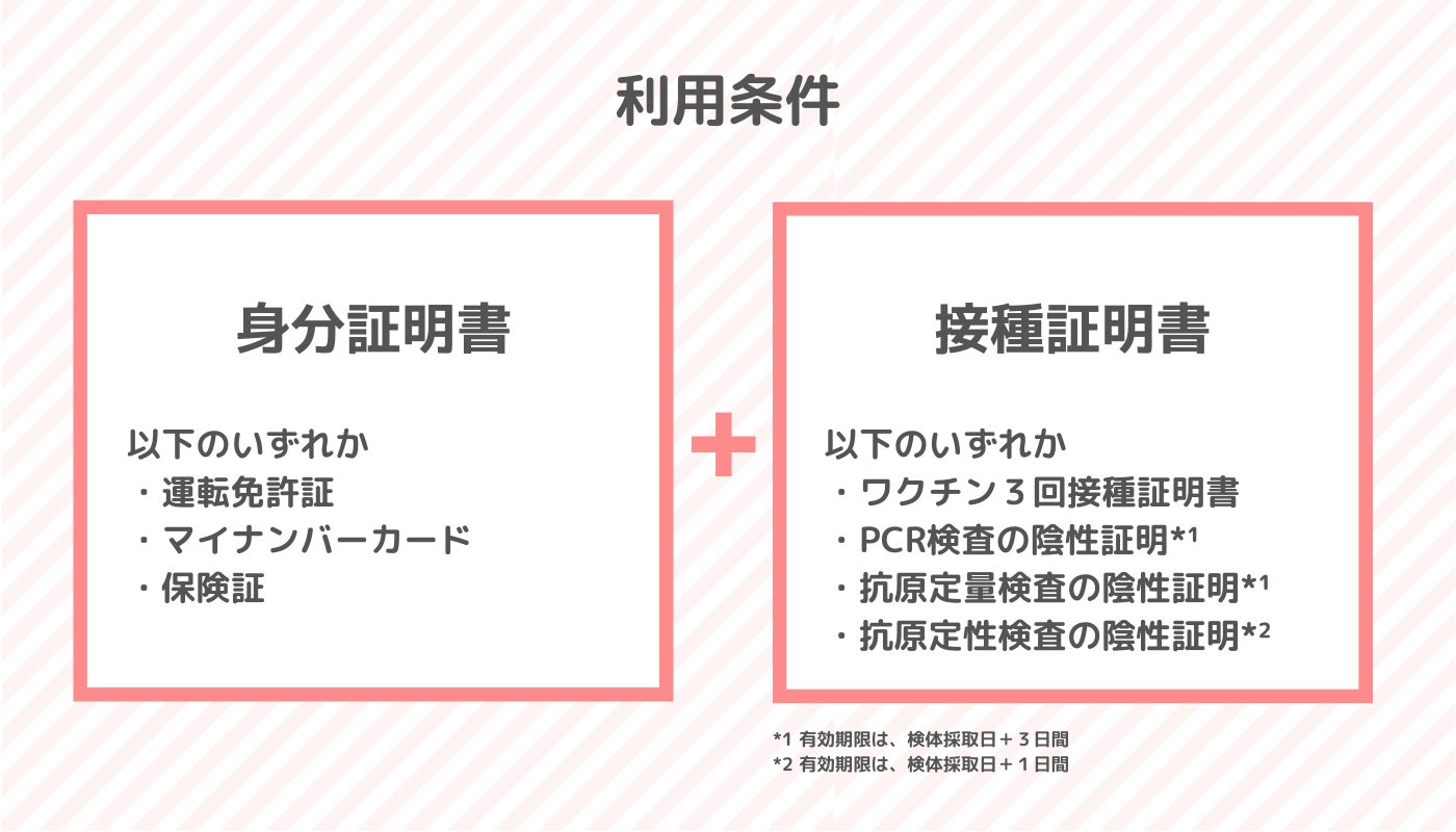 キャンペーンの利用にあたっては、所定7項目の記載のある検査結果通知書の提示が必要です。有効な検査結果通知書の発行が可能であることを、必ず事前に各検査所へご確認ください。