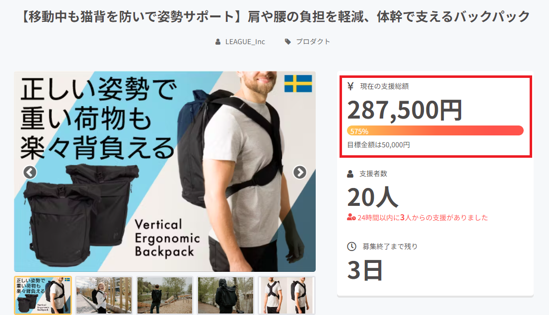 【支援金額287,500円達成!】正しい姿勢で重い荷物もラクラク・体幹で支えるバックパックがCAMPFIREで先行予約発売中!