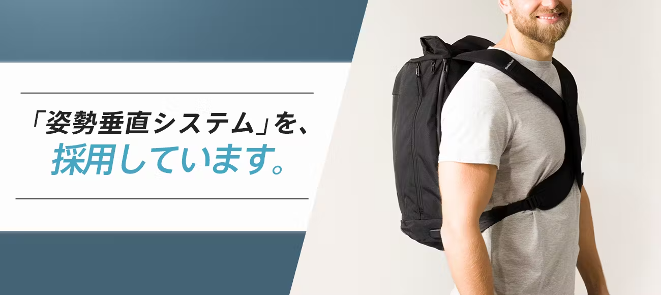 絶賛予約販売中!独自の特許構造「姿勢垂直システム」で自動的に正しい姿勢に整え、肩や腰の負担を軽減しながら重い荷物も軽々と背負えるバックパック