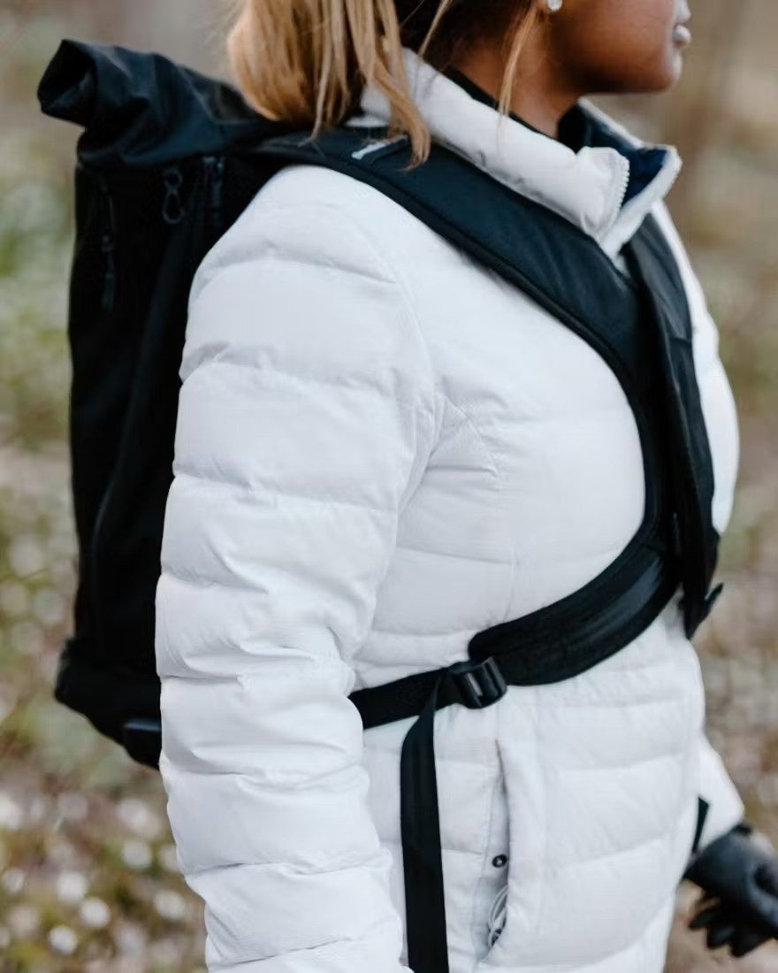 Vertical Ergonomic Backpackはバックパックを体に密着させ、肩ではなく体の中心に近い胸骨と腰部でバックパックを支えます。