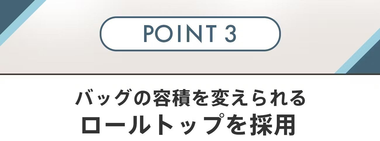 荷物が少ない時は余ったスペースを丸めて収納、大きな荷物の時はロール部分を伸ばして収納できたりと、臨機応変に対応できます。