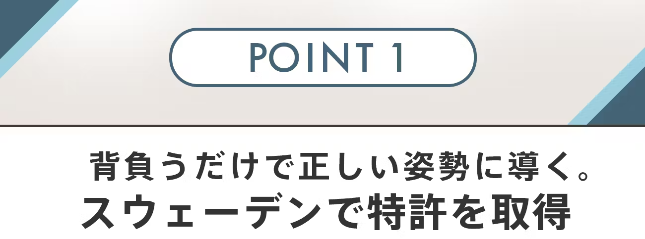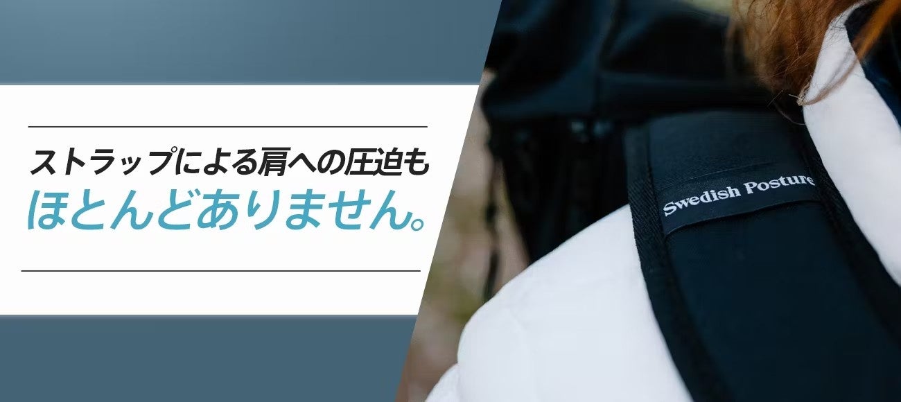 これによりバックパックを背負っても体のラインを自然な形で真っ直ぐに保ち、悪い姿勢に伴う首や肩、背中、腰に掛かる負担を圧倒的に軽減。