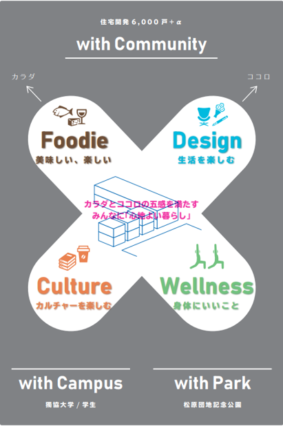 これまで東武グループでは、良好な住環境や獨協大学をはじめとした教育・文化施設のほか生活利便機能が充実する本エリアにおいて、住宅開発や商業施設運営等の事業を展開しています。エリアの特長を活かし、本施設にて「Foodie」,「Design」,「Culture」,「Wellness」の4つのライフスタイルをテーマに“カラダとココロの五感を満たすみんなに「心地よい暮らし」”を提案する場所をコンセプトとして、生活を豊かに彩り、デイリーニーズを満たす商業施設を新たに展開します。