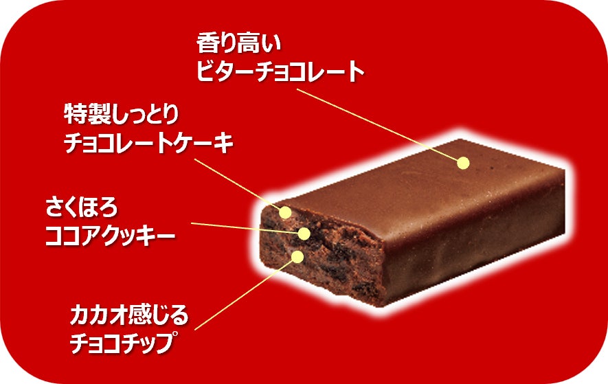 「ブラックサンダー しっとりガトーショコラ」 は、コニャックV.S.O.Pを染み込ませた自社焼成のチョコレートケーキとドミニカ・ガーナ・エクアドル3種のカカオ豆をブレンドした深みがある味わいのチョコレートチップを合わせ、カカオの華やかな香りが広がるチョコレートをコーティングしたしっとり食感と濃厚なチョコレート感が特長のチョコバーです。