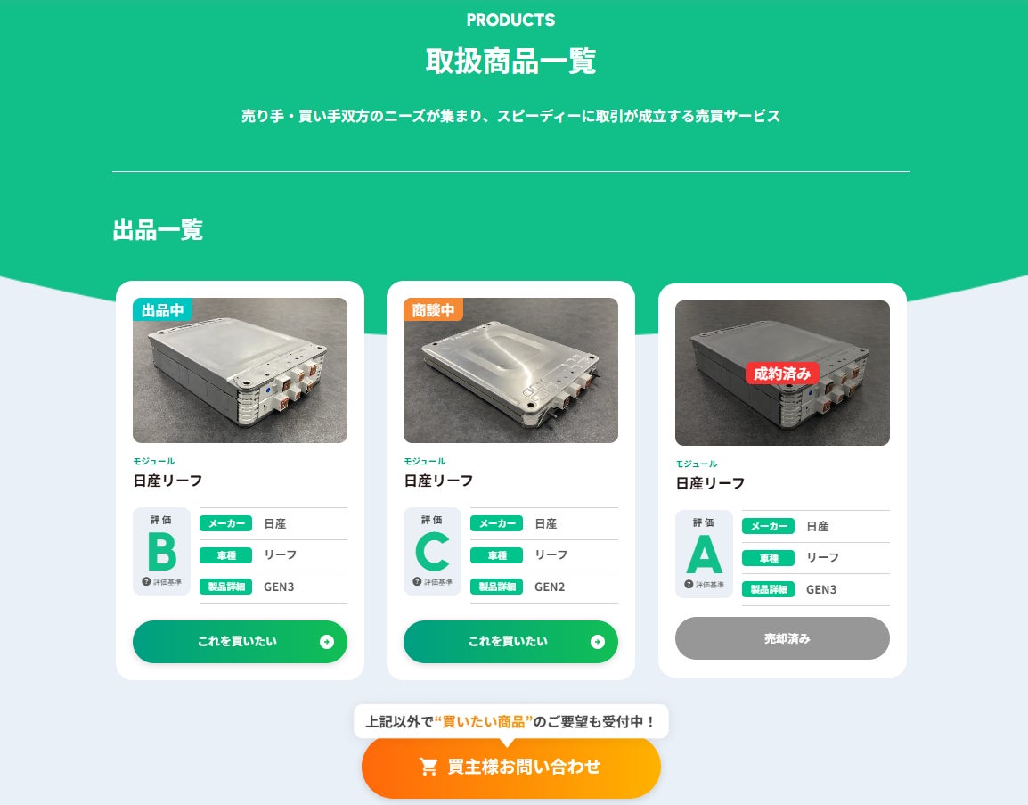 循環型マーケットデザインの株式会社オークネット(本社:東京都港区、代表取締役社長CEO:藤崎 慎一郎、以下:オークネット)は、使用済みEV(電気自動車)リチウムイオンバッテリー(以下:EVバッテリー)を活用したリパーパス製品などの流通プラットフォーム「Energy Loop Terminal(エナジー・ループ・ターミナル)」のバッテリー売買サービスをリニューアルいたしました。また、「Energy Loop Terminal」の売買サービスリニューアルに伴い、MIRAI-LABO株式会社(本社:東京都八王子市、代表取締役社長:平塚 利男、以下:MIRAI-LABO)と共同開発したバッテリー診断について、単体で利用可能な診断サービスの提供も開始いたします。