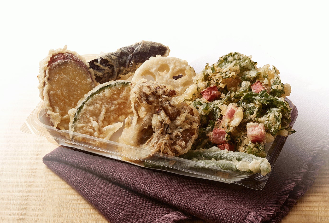 【春菊と紅芯大根のかき揚げと天ぷら盛合わせ・春菊と紅芯大根のかき揚げと野菜天ぷら盛合わせ】販売対象外店舗