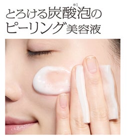 ふきとって、明るさ、つや感、うるおいまで感じる炭酸※1泡のピーリング美容液です。