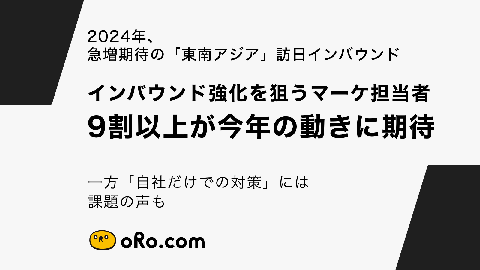 まず、東南アジア圏のインバウンド強化を狙うマーケ担当者の92.1%が、2024年の「東南アジアからの訪日インバウンド増加」に期待しており、その理由としては、「東南アジアの経済成長で旅行可能な収入を持つ中間所得層が増えているから」が63.4%で最多となりました。また、約9割が「自社単体での東南アジアのインバウンドプロモーション」に課題を抱えていることもわかり・・・
