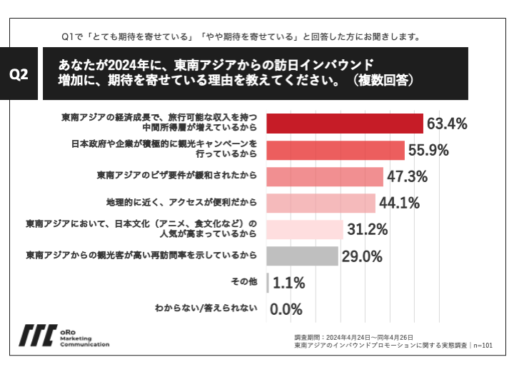 Q1:2024年に、東南アジアからの訪日インバウンド増加に期待を寄せていますか。