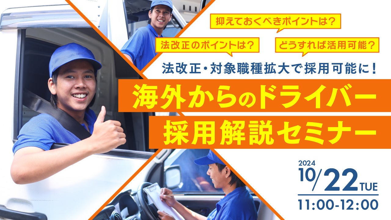 本セミナーでは、外国人ドライバーの採用方法やその活躍を促進するためのポイント、法改正の概要、採用における手続きや見通しについて詳しく解説し、他業界での外国人受け入れや集客の成功事例についても取り上げます。