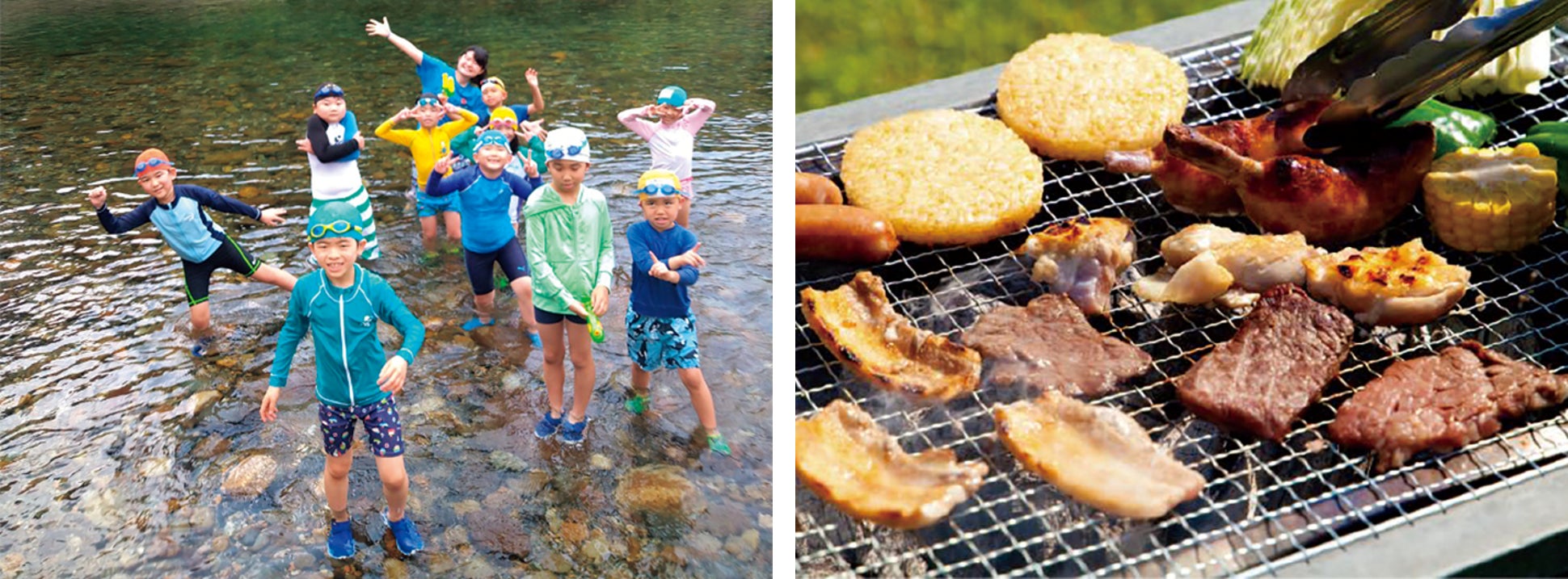 クラフト体験、きれいな清流で川遊び、みんなでバーベキュー、花火大会